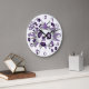 O relógio temático de futebol desta garota fofa apresenta uma "explosão" de bolas de futebol roxas e brancas de tamanho variado e formas roxas, cinzas e estrelas brancas com números de rosto do relógio superlotados - personalize o monograma do atleta e o número de camisa - por katz_d_zynes