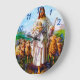 Jesus, bom redemoinho, tem Jesus com suas ovelhas andando em um campo com todos olhando para ele. Com um céu azul claro e grama verde atrás deles. E ele tem uma roupa branca segurando uma ovelha bebê. Esta é uma foto antiga do início de 1900. Este relógio tem números de madeira marrom de 1 a 12.Moldura de madeira castanha e fundo azul claro. A cor de fundo pode ser alterada para qualquer cor que você queira que seja com a etiqueta personalizada.John 10:7-21 I Am the Good Shepherd