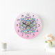 Bonito relógio de desenho abstrato, cor-de-rosa e roxo, para um quarto, cozinha ou artesanato.