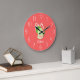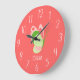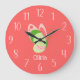 Relógio de parede para creche ou quarto de menina apresenta melancia rosa e borboleta verde em fundo rosa. Personalizar com nome ou iniciais.