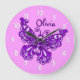 A borboleta das garotas deu um presente perfeito para o relógio de parede. O relógio bonito parece excelente no quarto de uma criança. Personalize com seu próprio nome. Atualmente, lê Olivia. Desenvolvido exclusivamente pela Sarah Trett.
