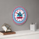 Um relógio bonito que pode ser mostrado orgulhosamente em qualquer quarto de meninos. As bordas exteriores do relógio são feitas em gingham vermelho e azul. A face interna, com o veleiro vermelho e azul, é bordada em vermelho e azul com marcadores azuis. Os números são brilhantes e ousados num vermelho coordenador.
