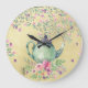 Relógio Grande Bule de Aquarela Elegante e Flores Douradas