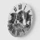 Este Bonito Border Collie Dog Large Clock apresenta uma fotografia fantástica, a preto e branco, de um cão collie de fronteira bonito a deitar num tronco de árvore. Um complemento perfeito para a casa de qualquer amante de cachorro lá fora. Imagem exclusiva do Zazzle e não pode ser encontrada em nenhum outro lugar! © Designs de Dafydd.