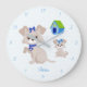 Adicione um toque fofo ao seu quarto ou berçário doméstico com este adorável relógio de puppy wall. O relógio tem um cão mamãe com um filhote de bebê. Os dois cachorros estão vestindo arcos azuis e o cachorro-mãe está vestindo uma coleira. Há também uma casa de cachorro no fundo. Personalize o relógio com o nome da sua garotinha ou do seu filho.