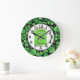 10,75 pol de relógio de parede acrílica redonda com uma imagem festiva de shamrocks e cervejas verdes em preto. A cara branca do relógio fácil de ler tem uma imagem de uma cerveja verde com um sentimento de feriado e uma borda negra. Veja a Rua inteira. Coleção de Relógio do Dia de Patrick no DÉCOR | Seção Relógios. Este produto não está associado nem afiliado ao titular original dos direitos de autor.