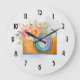 Relógio Grande Câmera Laranja Boho e Flores Aquarela