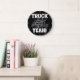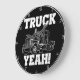 Este relógio ousado e espiritual celebra o amor por caminhar. Contra um fundo preto, ele apresenta uma ilustração branca e clara de um caminhão-cisterna. A frase entusiasmada "TRUCK YEAH!" é exibida de forma destacada em uma fonte branca grande e aflita, fazer uma declaração clara e impactante. Essa design é perfeita para qualquer espaço de entusiastas de caminhões, incorporando uma paixão por grandes plataformas em uma estética clássica de preto e branco.