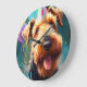 Relógio Grande Cão Airedale com chapéu de aniversário e balões