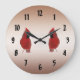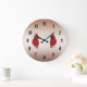 Este relógio de parede apresenta dois cardeais vermelhos brilhantes. Estas criaturas de escarlate são verdadeiros reis de pássaros do quintal! Eles são disparados por um fundo metálico de bronze. Você pode limpar os números se preferir um design mais simples.