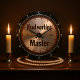 This image features a round wall clock designed to look like a distressed, metallic circular saw blade with a warm, coppery tone. The clock face has a brushed, textured appearance in shades of orange and brown, suggesting aged metal, with some visible scratches and wear. The outer edge of the clock forms the jagged teeth of a saw blade, rendered in a darker, rusty brown. The words "Wood Master" are boldly inscribed in the center of the clock face in a strong, dark script. "Wood" is in a larger, flowing script, while "Master" is a larger, more structured script below it. The numbers 1 through 12 are visible around the clock face in a dark brown, matching the text. The clock has black hour and minute hands. This clock is ideal for a woodworking shop, a garage, or as a unique gift for a carpentry enthusiast.