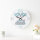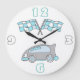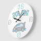 Relógio Grande Carro azul e Flagres de Raça em Branco