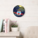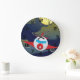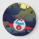 Relógio Grande Cartoon Red Airplane Flying In Night Sky