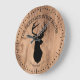 Relógio russo de cabine de madeira personalizado com nome de família e ano estabelecido. O relógio de silhueta da cabeça de veado é perfeito para a sua decoração de cabana de cabana de cabana de verão.