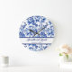 Um relógio de casamento com um design azul floral e espaço para a noiva, o nome do noivo e a data do casamento.