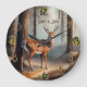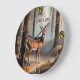 Jovem veado na floresta. Árvores altas no fundo. Embora este design seja matéria masculina, é um pouco delicado. Aquarela. Bonito.