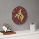 Este relógio de parede mostra o que todos sabem sobre Wyoming. Cavalos e vaqueiros andam! Apresenta uma imagem de vaqueiro dourado e da silhueta de cavalo balançando sobre um fundo castanho escuro. Os números dourados facilitam a leitura. *Este design usa imagem © Graphics Fatory.com*