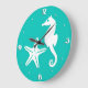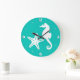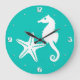 Relógio Grande Cavalo e estrela do mar - branco em turquesa