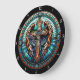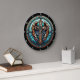 This exquisite wall clock features a captivating stained glass design of a majestic cross with gracefully outstretched, multi-hued wings. The intricate details and radiant spectrum of blues, oranges, and purples create a powerful and serene focal point, perfect for adding a touch of faith and spiritual beauty to any home or sacred space. Edit color of the clocks numbers in the Design tool to your favored colors.