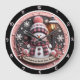 Esta encantadora imagem redonda mostra um bonitinho bonitinho bonitinho de neve em um chapéu de xadrez rosa e preto e cachecol. Ele está rodeado por flocos de neve delicados, bagas vermelhas, e um poste iluminado. Um cartaz aos seus pés lê 'Flocos de neve são beijos do céu', dando à peça uma sensação de feriado chorosa e emocionante.