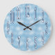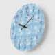 Um céu azul macio está cheio de nuvens fofinhas neste relógio de parede fofo, perfeito para o quarto de uma criança, berçário ou sala de jogos. Escolha entre três tamanhos de relógio. Copyright Scarebaby Design.