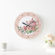 Este relógio exclusivo tem a imagem de um bule de ornamentado rosa bonito com um buquê floral rosa e verde em sua base. O bule e o buquê destacam-se em relação a um fundo interno branco, que é enquadrado com um padrão rosa coral correspondente. Os números de corais e marcadores mais escuros tornam o relógio fácil de ler. Bonito para qualquer cozinha ou sala do dia!