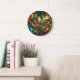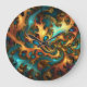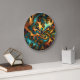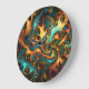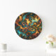 Relógio Grande Chama de Cor: Teal, Dourada, dança Fractal Laranja