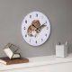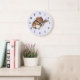 Um relógio com um design giro criado com aquarelas com um chapéu de vaquinha marrom com um buquê de flores cor-de-rosa.