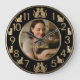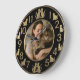 Celebrate your passion for felines with this elegant and sophisticated customizable wall clock. Featuring a striking design in deep black and luxurious metallic gold, the clock's frame is adorned with chic, stylized silhouettes of cats marking every hour. The gold numbers (1-12) add a touch of timeless class. The large center space is designed to be personalized with your favorite photo—perhaps of you and your beloved cat—and a customizable name (like "Eleonore" in the example). This unique timepiece makes a statement as stylish home decor and is the perfect personalized gift for any devoted cat owner or lover who appreciates glamour and elegance.