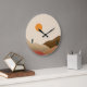Um relógio de parede moderno e chic perfeito para um quarto teórico boho tropical ou sala de estar. Ele apresenta um pôr do sol na sobremesa com cacto. Perfeito como presente para recém-casados, amigos de uma festa de inauguração e aniversários.