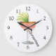 Diga olá para este relógio bonito e engraçado com uma margarita! Este relógio apresenta um delicioso coquetel que lhe diz que são cinco horas em algum lugar. O 5 se foi e em seu lugar está a palavra "algures". No meio está uma margarita aquarela com fatias de limão. Fundo branco.