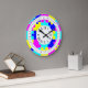 O design é elegante, animado e na moda, exibindo os algarismos romanos em pedaços coloridos de quebra-cabeça de serra-gigante em tons brilhantes, amarelos quentes, azuis profundos e azuis-negros. Esses números romanos servem como marcadores de hora do relógio, em conjunto com marcas minúsculas de traços para detalhes adicionais. Para solicitações ou perguntas especiais, entre em contato com o artista em wafadahdalcreates@gmail.com. © Wafa Y. Dahdal - Todos os direitos reservados. WD Art