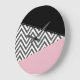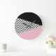 Relógio Grande Cinza Zigzag, Cinza Chevron, Zigzag Patterno, Rosa