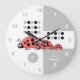 Cinza e relógio branco, com pássaros-de-cabeça-pretos e vermelhos giros, para o quarto de criança, decoração infantil. Personalize com um nome. Ideia do presente.
