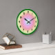 Este pulso de disparo de parede decorativo caracteriza um design circular luminoso bonito em cores pastel do arco-íris de verde, de amarelo, de cor-de-rosa, o azul e o branco. Os números podem ser cancelados se um design mais simples é preferido.