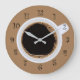 Classy coffee theme kitchen wall clocks designed with a coffee cup graphic and fancy trendy clock face numbers in style. The perfect housewarming gift for the home of coffee enthusiasts to decorate the walls of the kitchen or dining room. Created on high quality acrylic.
