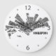 Cingapura, estado no sudeste asiático. Mapa da cidade em estilo monocromático em um relógio de parede branca. A área urbana de Cingapura como definida na paisagem com um enfoque abstrato enfatizando o centro urbano. A rede rodoviária da cidade revela aspectos do planejamento urbano para os entusiastas e visitantes da cidade. | UrbanizaçãoCamisas
