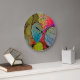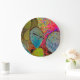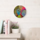 Um relógio colorido do deserto, com uma imagem abstrato de um cacto de pera picante. Com tons de vermelho e roxo junto com cores verdes brilhantes, este item exclusivo certamente adiciona um tema interessante para sudoeste ao seu espaço.