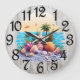 Uma Linda Madeira Grande Simulada Relógio Numerado Texturizado Com Uma Célula De Caça E Um Tema De Starfish