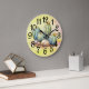 Um Belo Relógio De Parede Redonda, Projetado Em Amarelo Com Plantas De Cacto.