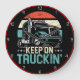 Este relógio clássico captura o espírito da estrada aberta com a sua mensagem "MANTENHA-SE EM TRUKIN". Apresentando um caminhão legal contra um fundo solar retrolistrado, é um design de eterno para qualquer motorista de caminhão ou entusiasta. Um presente ideal para aniversários, Dias de os pais, ou apenas para inspirar viagens contínuas.