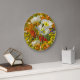 Cópias brancas crescendo ao redor da fotografia de flores coloridas tropicais em um Relógio de Parede, grande, médio ou pequeno. A papoila branca é uma flor usada como símbolo de paz. Arctomecon merriamii (papoila branca) também conhecida como papoila-do-deserto, papoila-branca e papoila-da-baliza-excelente. #WallClock #Clocks #WhitePoppy #TropicalFlowers