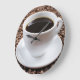 Xícara branca com café preto nos grãos de café.