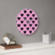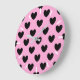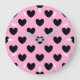 Relógio Grande Corações de polca pretos em rosa-doce de algodão