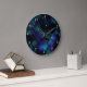Um relógio de parede divertido com um design de galáxia cósmica com cores azul e verde. Faz uma ideia de presente de excelente ou acessório para um quarto adolescente ou decoro de dormitório para quem gosta de espaço, astronomia, estrelas, galáxias etc.