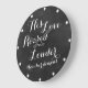 Um relógio preto no quadro redondo com marcadores de asterisco para números e um belo ditado amoroso. Este relógio é um presente perfeito para qualquer um. Use a citação que está no relógio ou crie a sua própria como o ditado do relógio é totalmente personalizável.