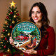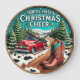 This rustic and festive clock features a red vintage pickup truck driving on a snowy country road, surrounded by snow-dusted pine trees. A pair of decorated red and turquoise cowboy boots stands prominently in the foreground, with the text "COUNTRY ROADS & CHRISTMAS CHEER" across the top. The image is bordered by a braided rope frame. The design may look real due to the high detail and three-dimensional texture in the artwork.