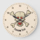 Um desenho de desenho animado do crânio bege com corações. Texto personalizado.