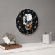 Crânio de Arte Digital e Borboleta Monarca Bandana - relógio preto, branco e laranja na parede.