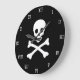 Um crânio tradicional e Crossbones de uma bandeira de pirata aka agradavelmente Roger, em um pulso de disparo de parede com os marcadores da hora de números dos numerais romanos aka, feitos dos ossos
